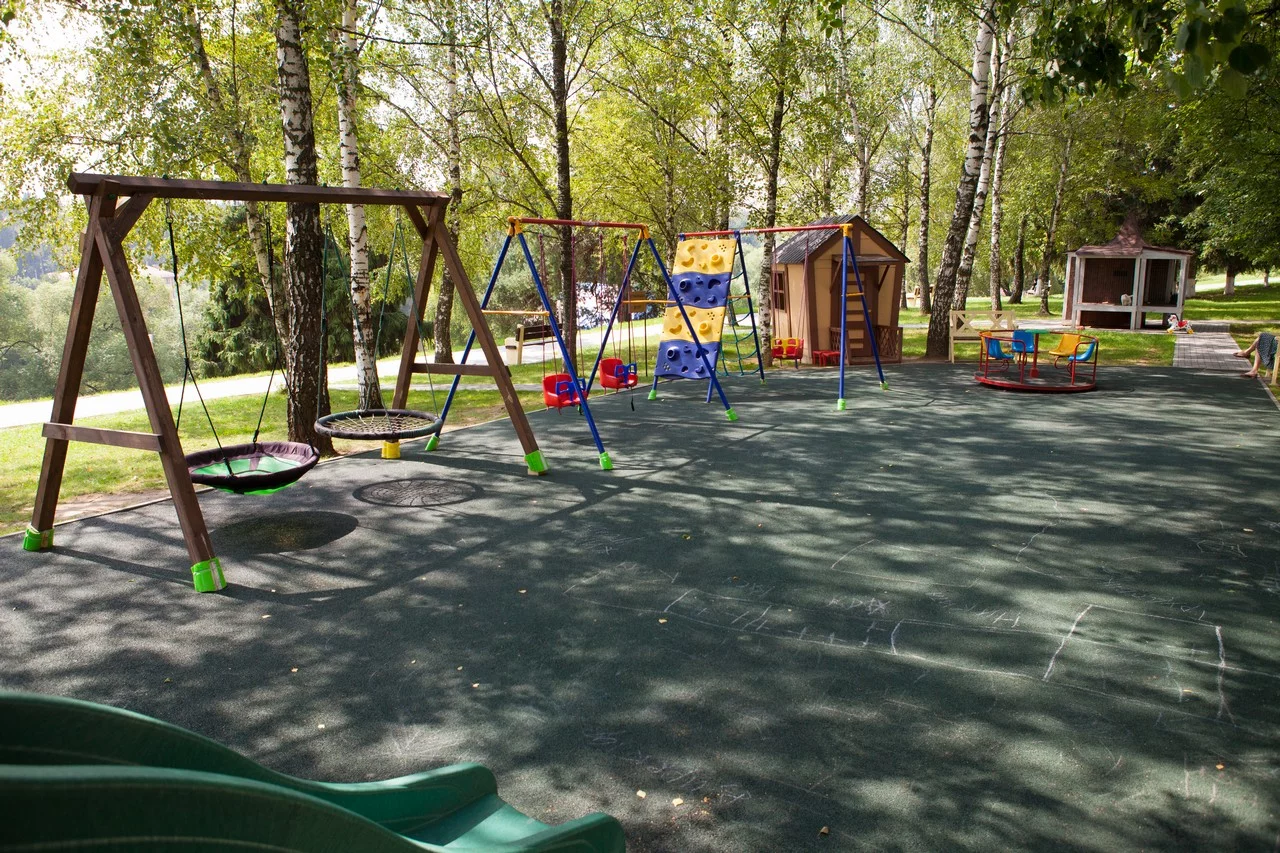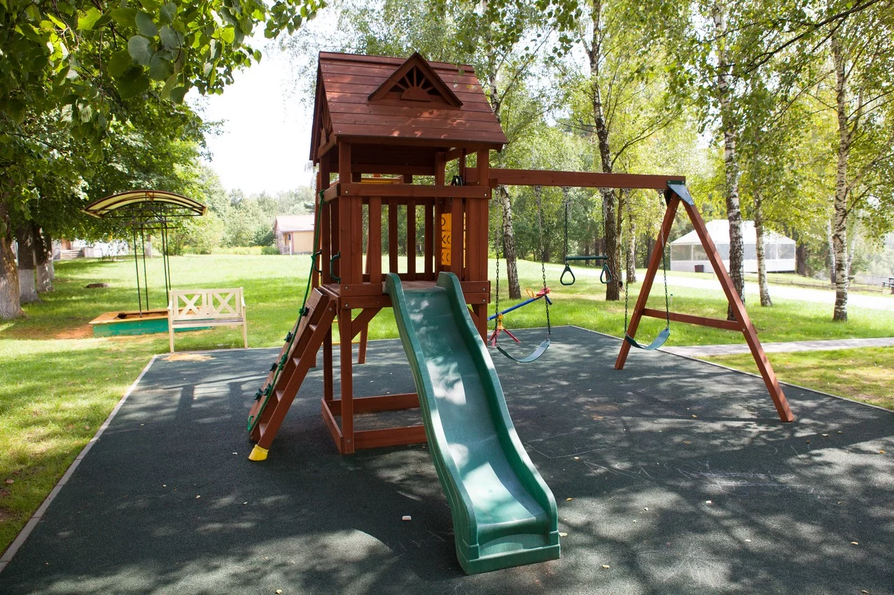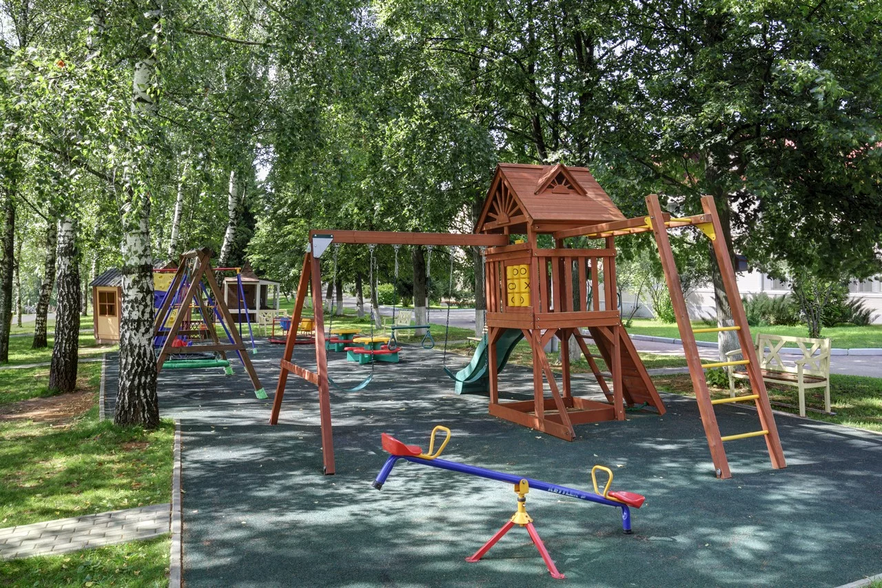 Детская площадка на территории отеля Valesko Hotel&Spa расположена на открытом воздухе в тихой зоне среди лиственного леса и предназначена для активного досуга детей младшего возраста. Оборудование включает качели, горки, игровые комплексы и элементы для лазания, соответствующие современным стандартам безопасности. Рядом организована зона для подвижных игр, где дети могут играть с мячом, а при желании — воспользоваться прокатом беговелов, самокатов или детских велосипедов. Площадка находится в шаговой доступности от жилых корпусов и детского клуба, что позволяет легко комбинировать уличные активности. Окружённая зеленью и удалённая от проезжих зон, она обеспечивает безопасность и спокойствие, позволяя родителям наблюдать за детьми, наслаждаясь видами парковой территории и свежим воздухом Подмосковья.