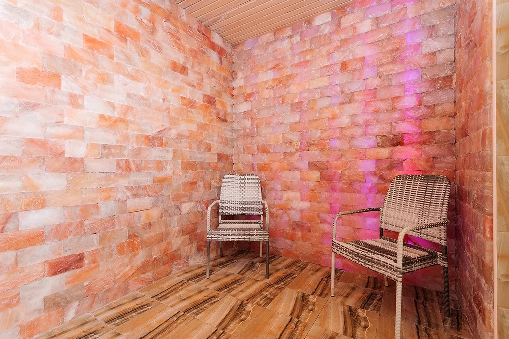 Соляная комната в отеле Valesko Hotel&Spa представляет собой пространство, отделанное натуральной солью, где поддерживается микроклимат, имитирующий условия соляных пещер. Такая среда способствует улучшению функций дыхательной системы, укреплению иммунитета и снижению уровня стресса. Процедура рекомендована при бронхитах, астме, аллергических реакциях, а также при кожных заболеваниях, включая псориаз и экзему. Благодаря очищающему и успокаивающему воздействию соляного аэрозоля, посещение комнаты помогает нормализовать сон, снять хроническую усталость и улучшить общее самочувствие. Сеансы проходят в тихой, расслабляющей обстановке и доступны гостям в рамках wellness-программ отеля. Перед первым посещением рекомендуется учитывать индивидуальные особенности здоровья, особенно при острых состояниях или обострении хронических заболеваний.